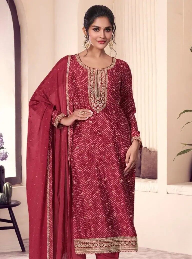 Crafted with a Chinon top, soft Santool inner, and matching Chinon bottom, it offers both comfort and style. The set is completed with a beautiful Chinon dupatta, making it perfect for festive and special occasions. Stitch it your way for a custom, elegant fit!