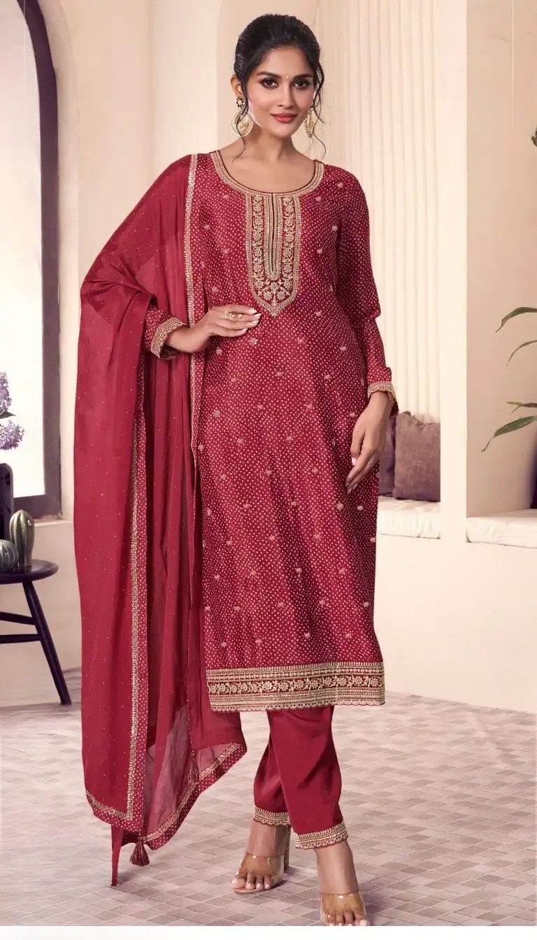 Add a touch of grace to your ethnic collection with this unstitched salwar suit set.